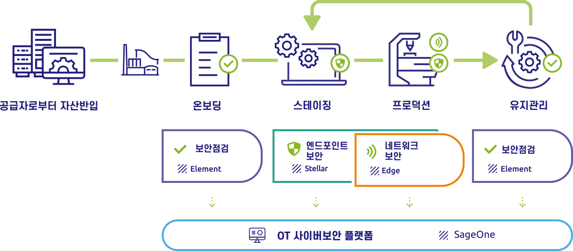 TXOne OT 제로 트러스트 프레임워크는 보안점검, 엔드포인트 보안, 네트워크 보안을 통해 계층화된 보안 솔루션을 제공함으로써 라이프사이클 전체 주기에 맞춰 주요 자산들을 보호합니다. 상위에 구축되는 보안 플랫폼은 전반적인 관점의 보안 가시성 및 제어 기능을 제공합니다.