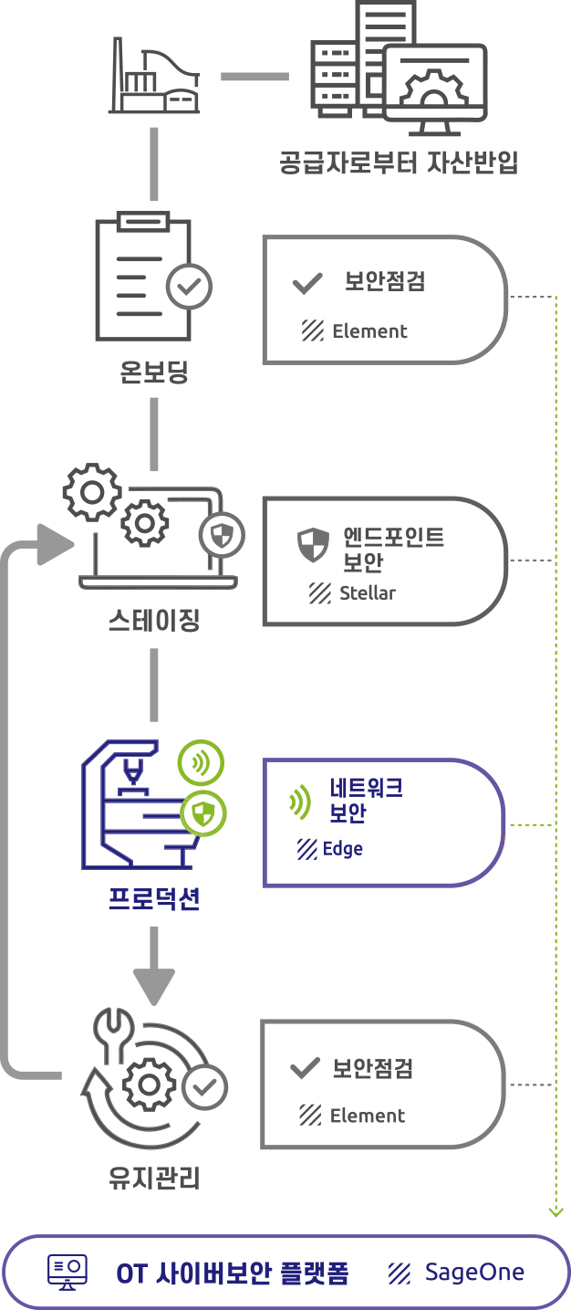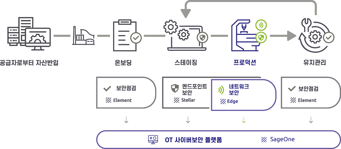 EdgeOne 은 OT 네트워크 보안 및 Edge 어플라이언스의 정보를 취합하고 제어할 수 있는 통합관리기능을 제공합니다.