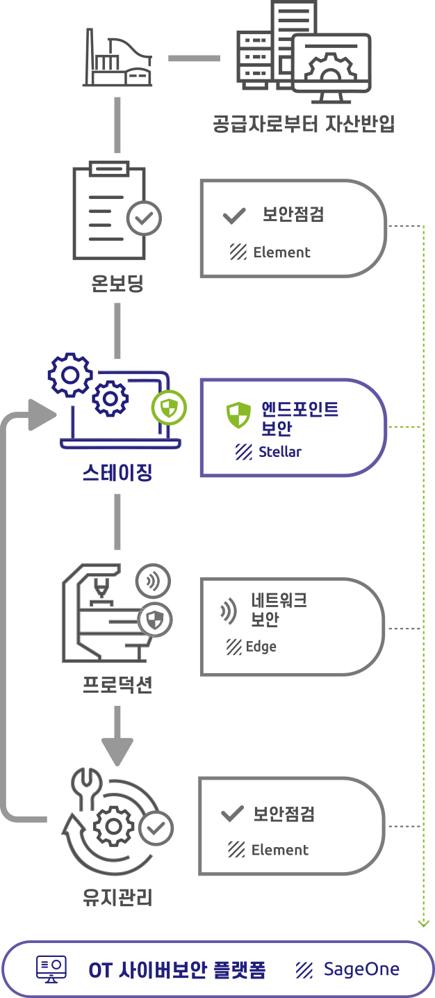 Stellar 는 소프트웨어 기반 OT 네이티브 엔드포인트 보안 제품입니다. 운영중인 정상 작업의 중단없이 어플리케이션 및 프로세스 레벨의 베이스라인을 기반으로 OT 환경의 비인가 변경을 적극적으로 방지하여 최신 및 레거시 디바이스를 보호합니다.